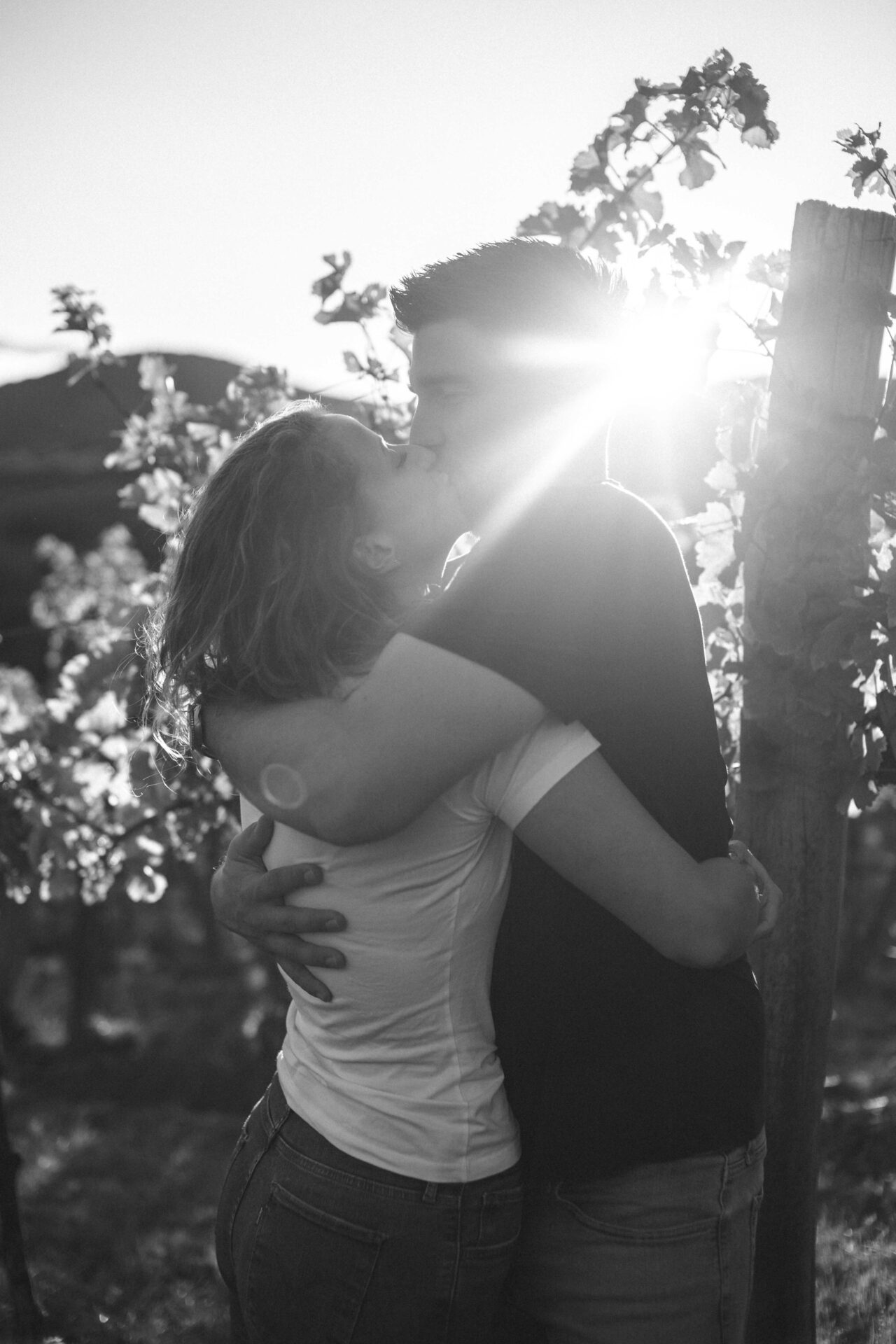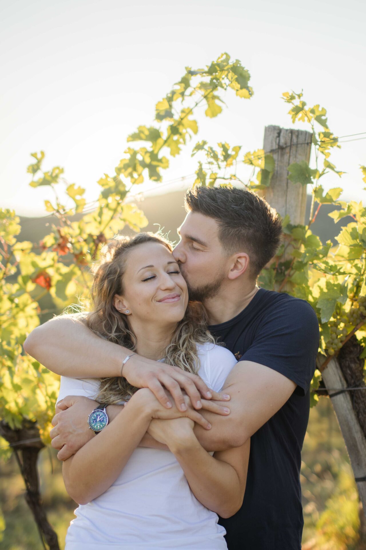 Die tierstehende Sonne bricht sich leise zwischen den Weinblättern während Innigkeit und Vertrautheit den Raum einnehmen. Voller Ruhe und Gefühl, Liebe und tiefen Blicken.